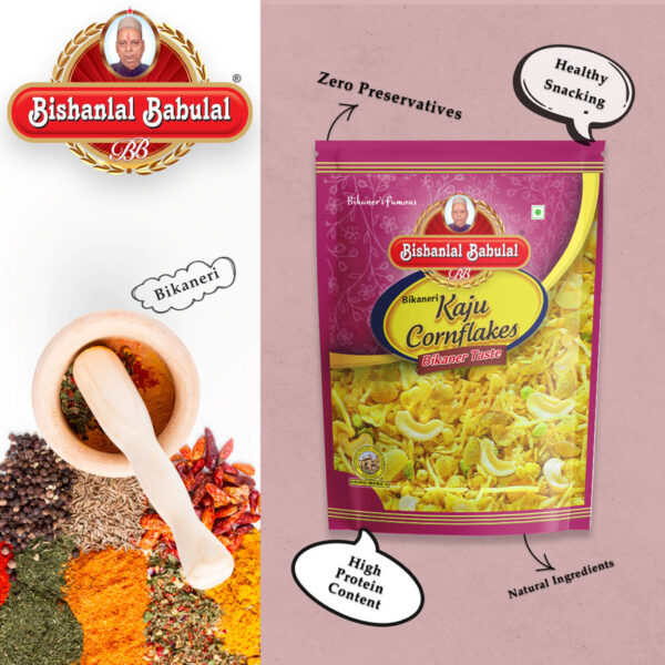 – Serve as a snack at parties. Relish exotic sweet mixture taste with Bishanlal Babulal Bikaneri Authentic Kaju Cornflakes Mixture.