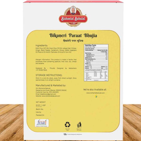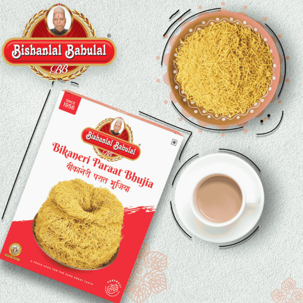 – Parat bhujia sev with spicy flavor. Perfect for tea snack.